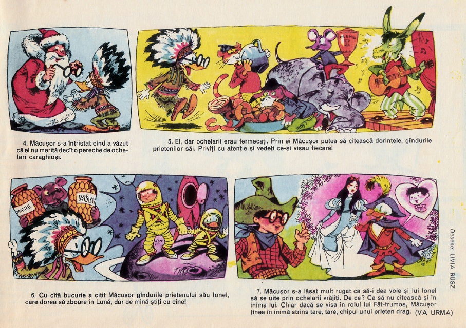 Aventurile lui Mac (desene Livia Rusz, scenariu Lucia Olteanu) apărute iniţial în revista Arici Pogonici nr. 12/1967.